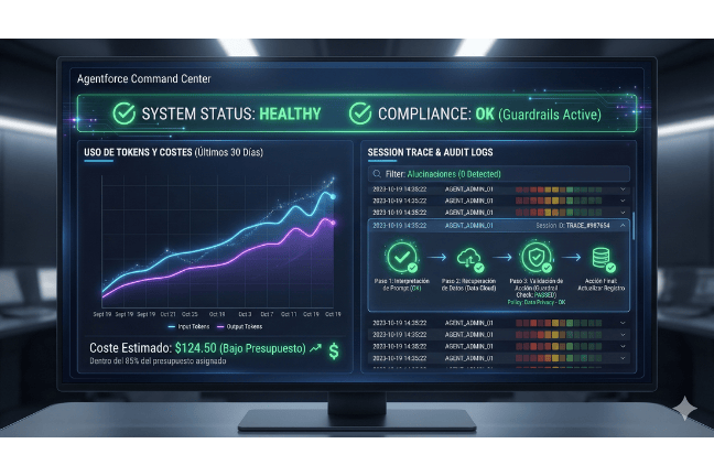 - Detección de Deriva: Alertas automáticas si un agente intenta actuar fuera de sus instrucciones.